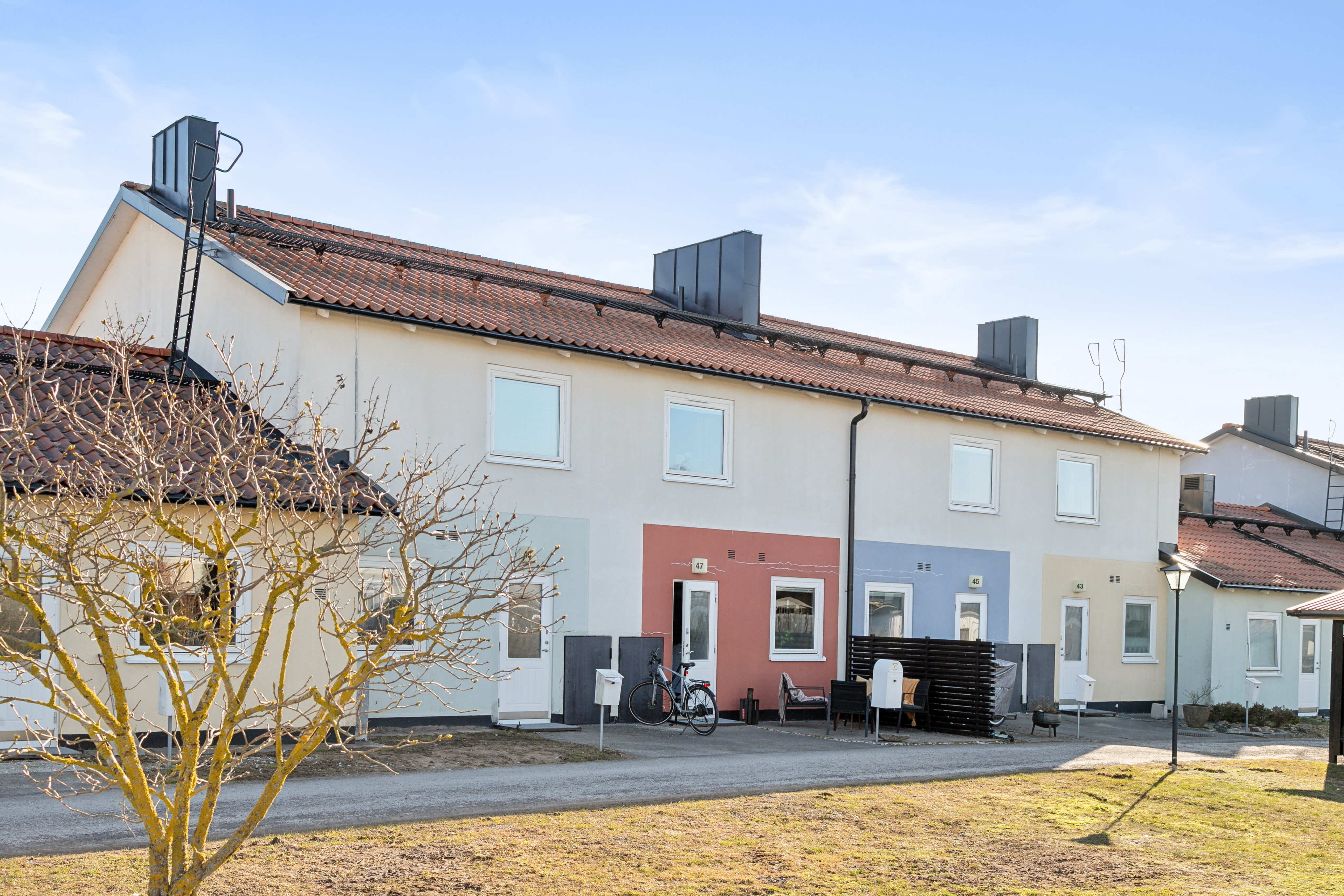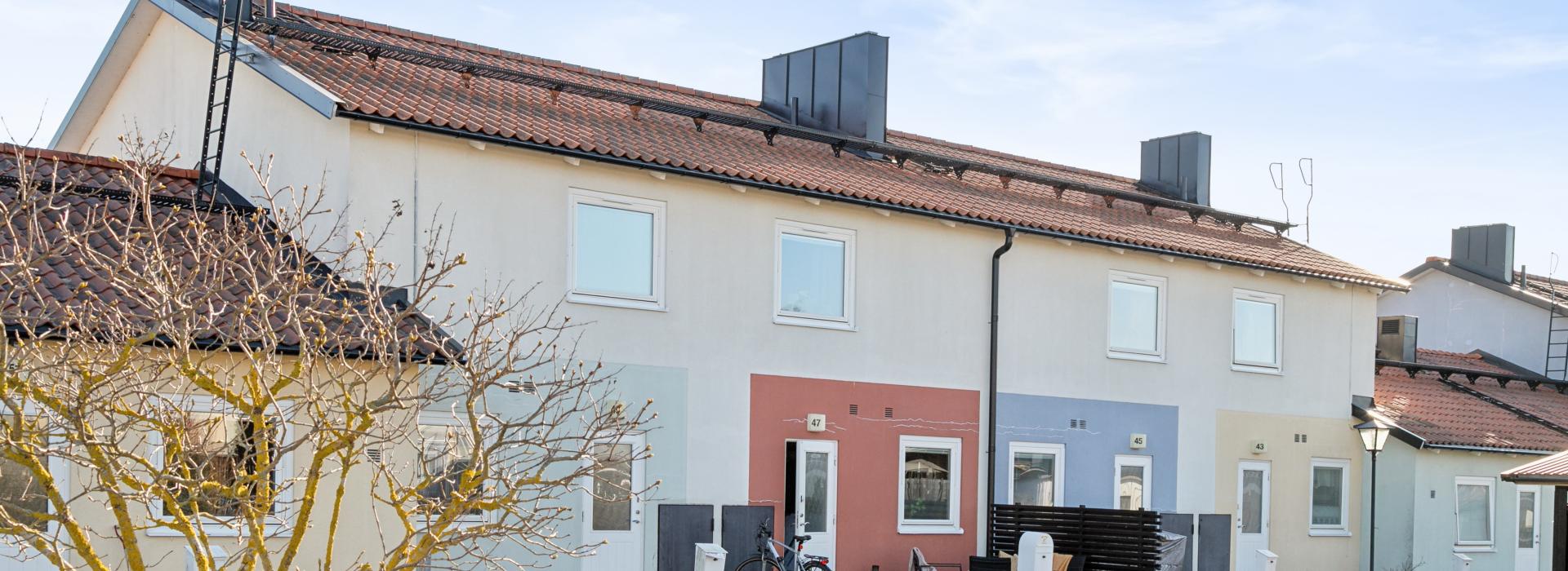 Välkommen till en mycket fin radhuslägenhet i två plan med stor uteplats i soligt söderläge. Vid lägenhetens entré finns även en uteplats mot den lugna innergården. Här bor du bekvämt i en välplanerad bostad med stambytt badrum samt en extra wc på entréplan, praktiskt utrustad med både tvättmaskin och torktumlare. Lägenheten har ett stilrent kök samt matplats och vardagsrum i trevlig öppen planlösning. Övre plan har fräscht helkaklat badrum samt tre sovrum varav ett större. Här finns också uppgång till stor vind med goda förvaringsmöjligheter.