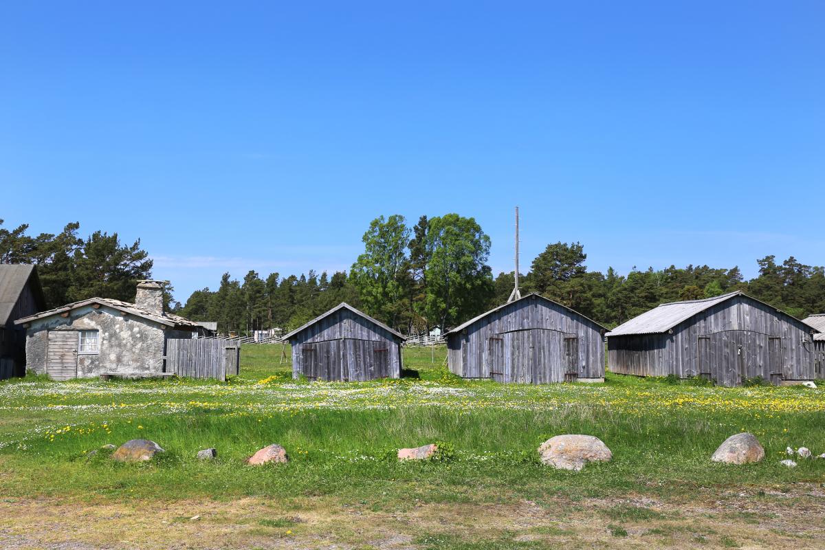 med fiskebodar i både trä och sten