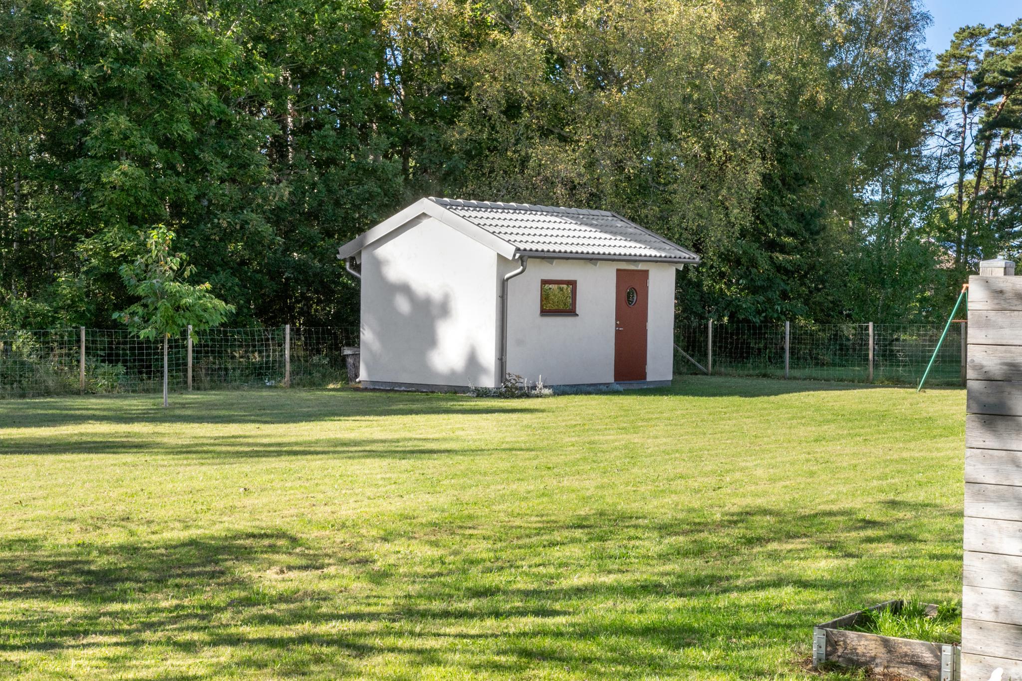 På tomten finns ett fint förråd med bra förvaring och plats för gym. Förrådet är i samma stil som huset och kan bli ett framtida gästrum om behov finns.