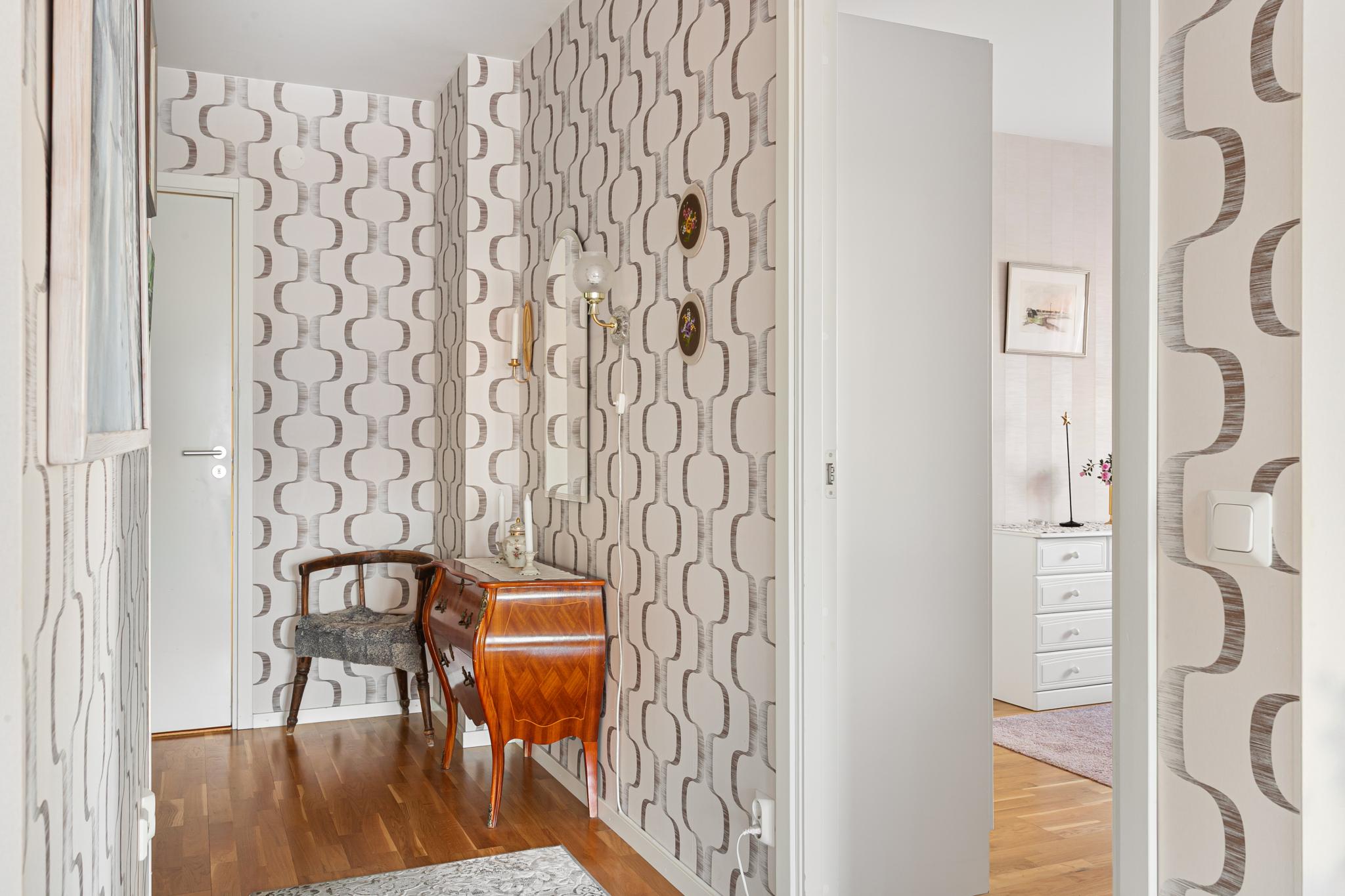 Vid hallen finns ett praktiskt förråd/klädkammare.