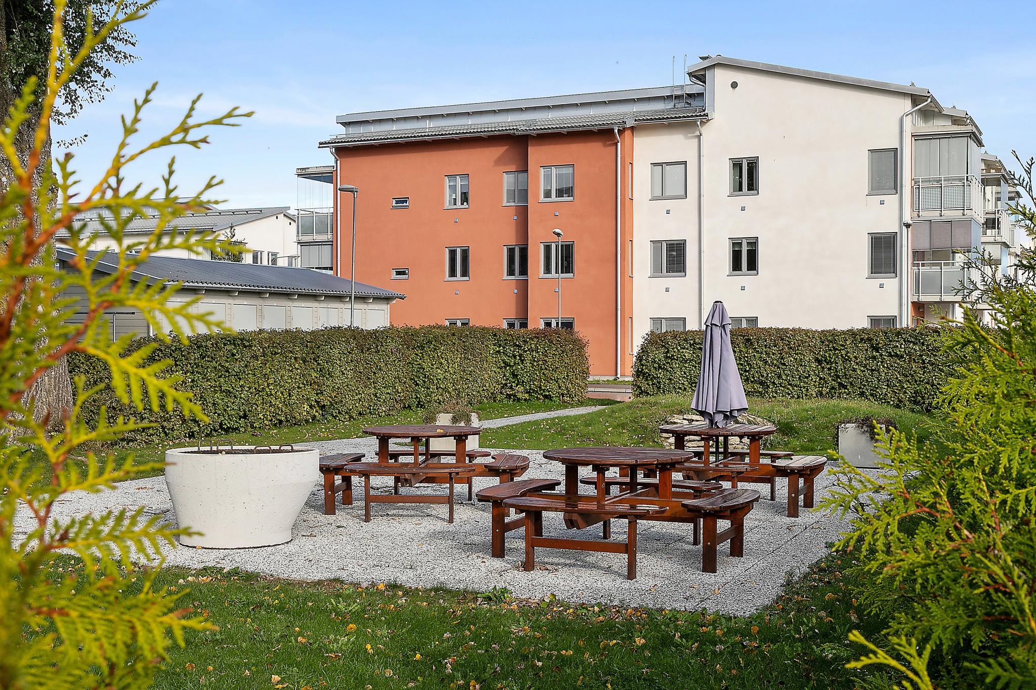 I centrala Visby med närhet till Östercentrum och Visby innerstad ligger denna omtyckta och populära bostadsrättsförening. Med endast 7-800 meter till ringmuren och Östercentrum där du finner livsmedel, apotek, banker, butiker, restauranger, caféer och mycket annat har du en närhet som tilltalar de flesta. Vill du promenera intill muren mot havet, ta “Hälsans stig” norrut eller gå ner till Visby hamn via innerstan så är det bara en promenad på cirka 10 minuter så befinner du dig vid Östergravar och kan välja promenadväg. Till skolor och förskoleverksamhet är det också nära och enkelt att ta sig.