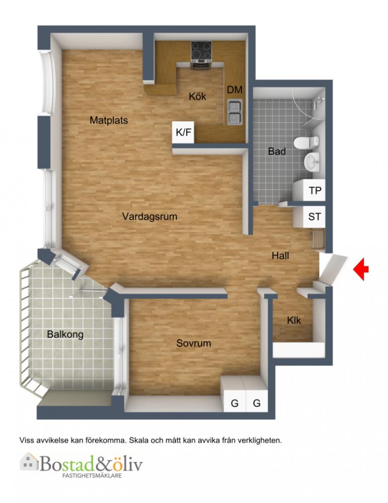 Samtliga areauppgifter är hämtade från bostadsrättsföreningen eller baserade på säljarens information. Dessa uppgifter kan av olika anledningar vara fel. Den köpare som tycker att arean har betydelse för köpet bör därför vidta en uppmätning.