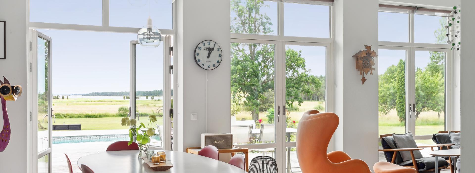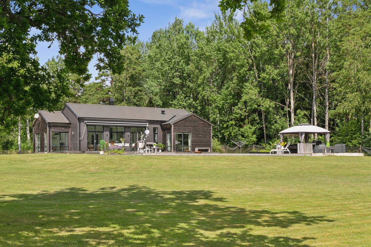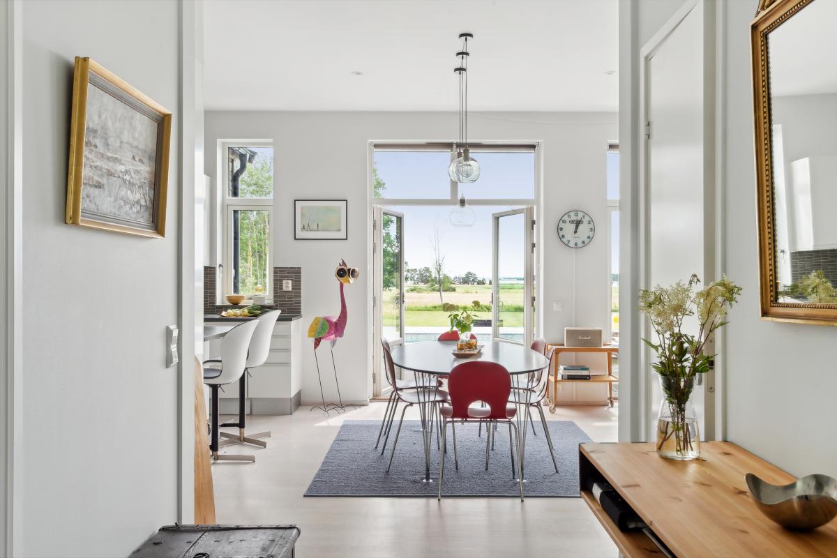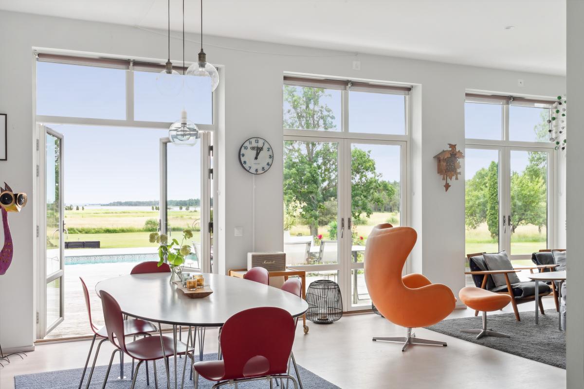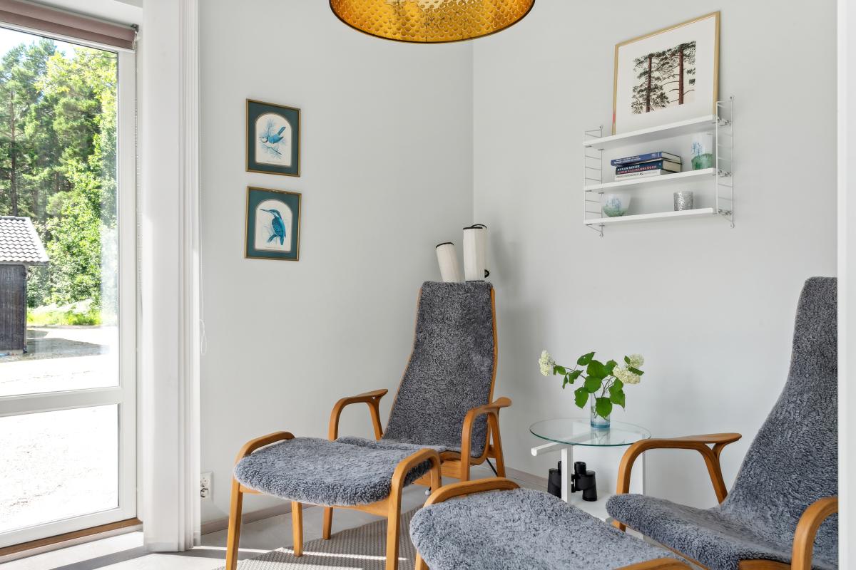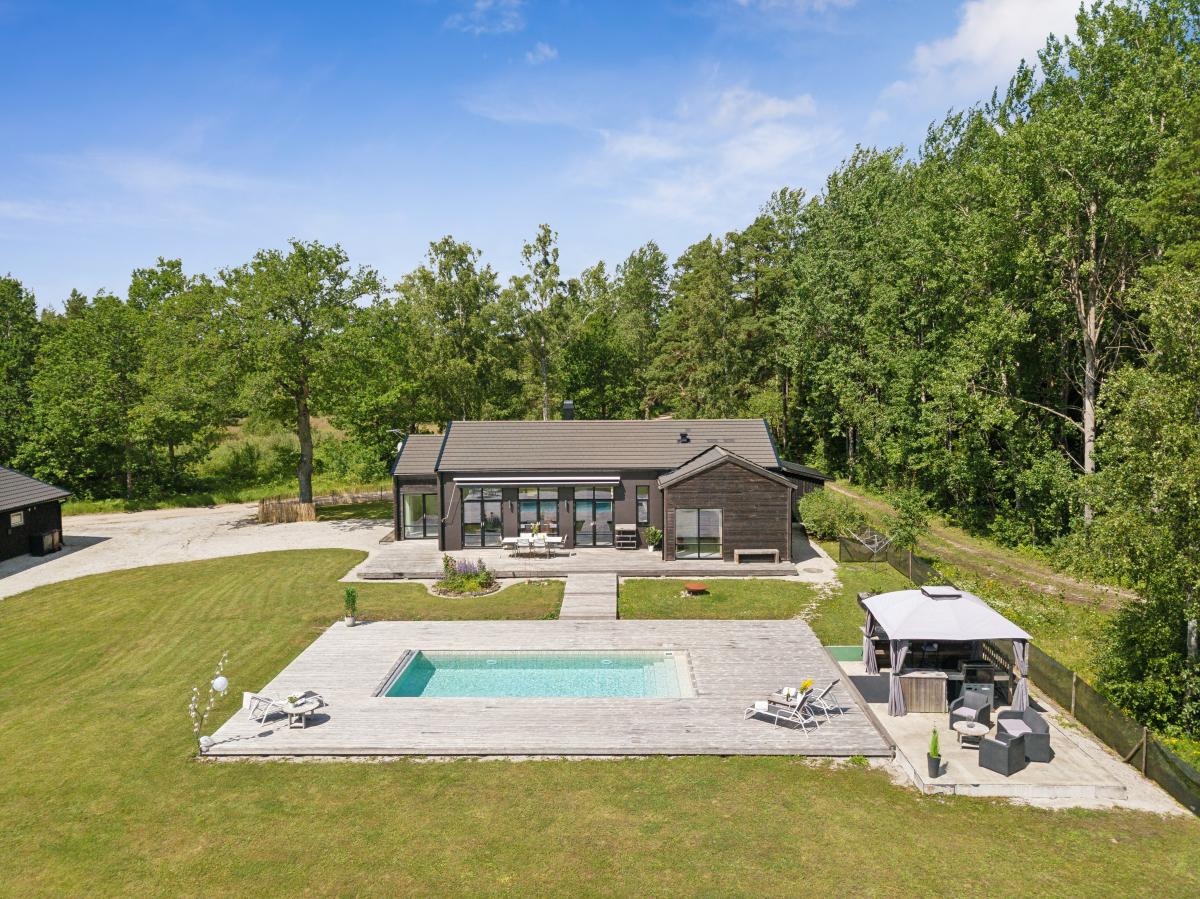 Huset är mycket trivsamt med ljus och rymd och genomgående smakfull inredning. Den öppna planlösningen tillsammans med generösa fönsterpartier suddar ut gränsen mellan inne och ute. Runt huset finns flera uteplatser i olika väderstreck som bjuder in till både avkoppling och sociala stunder. Sommartid blir trädäcket vid den uppvärmda poolen en naturlig samlingsplats där både stora och små kan njuta av långa, härliga dagar.
