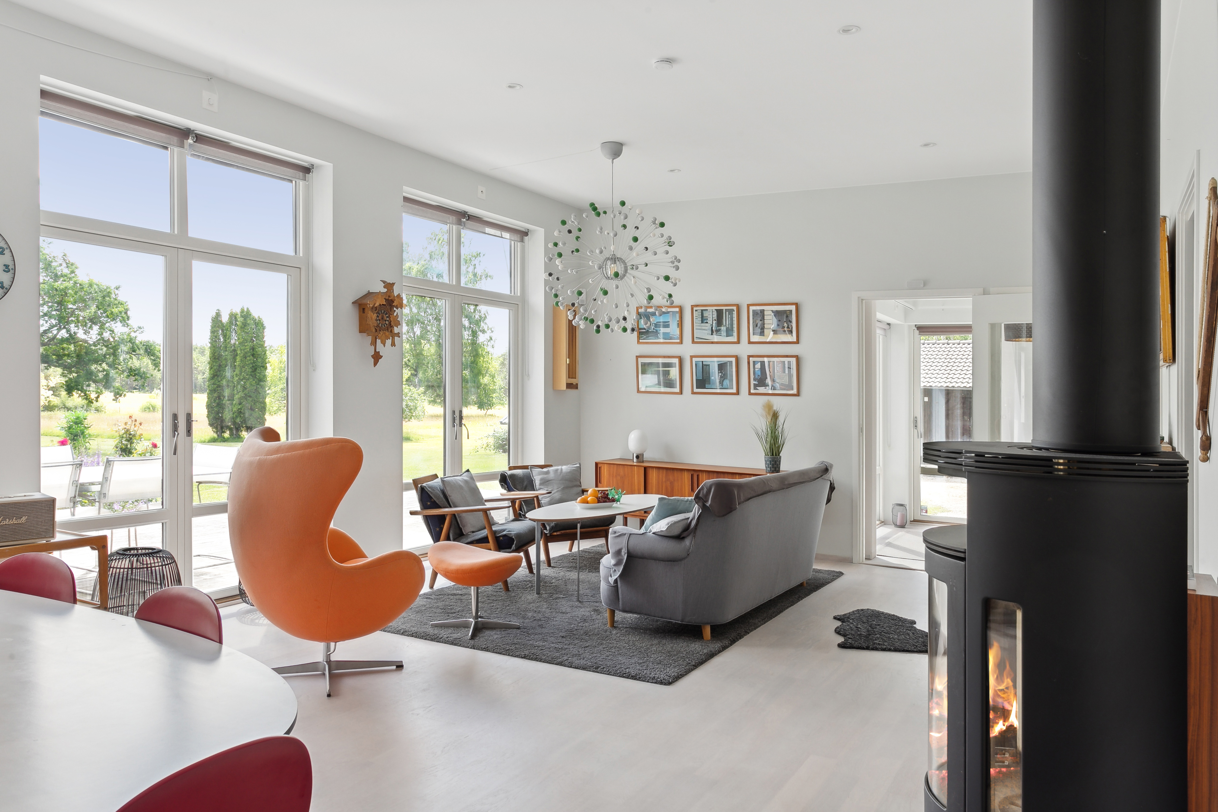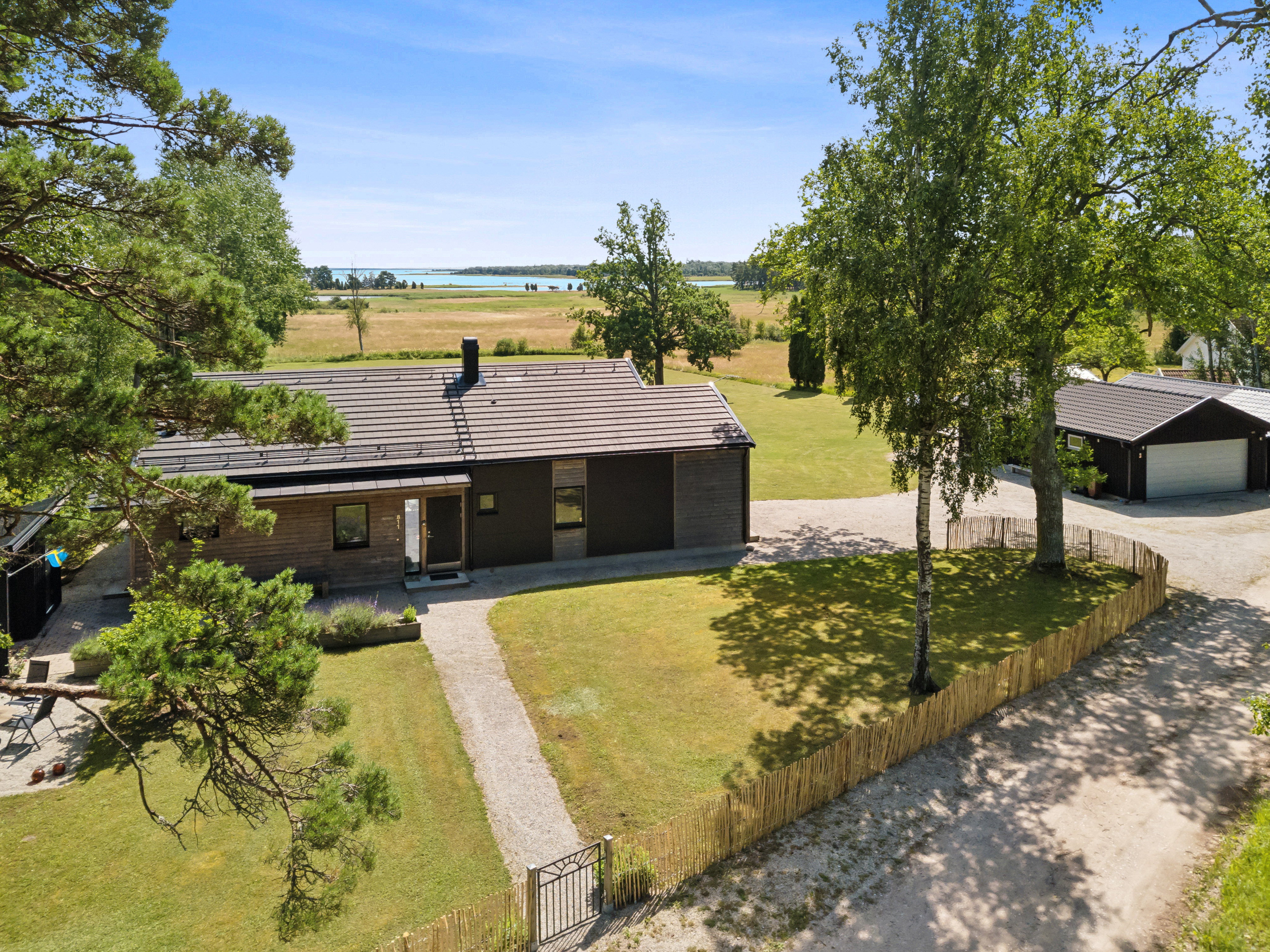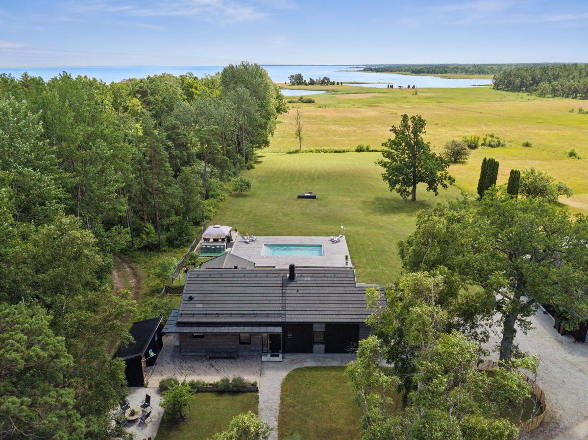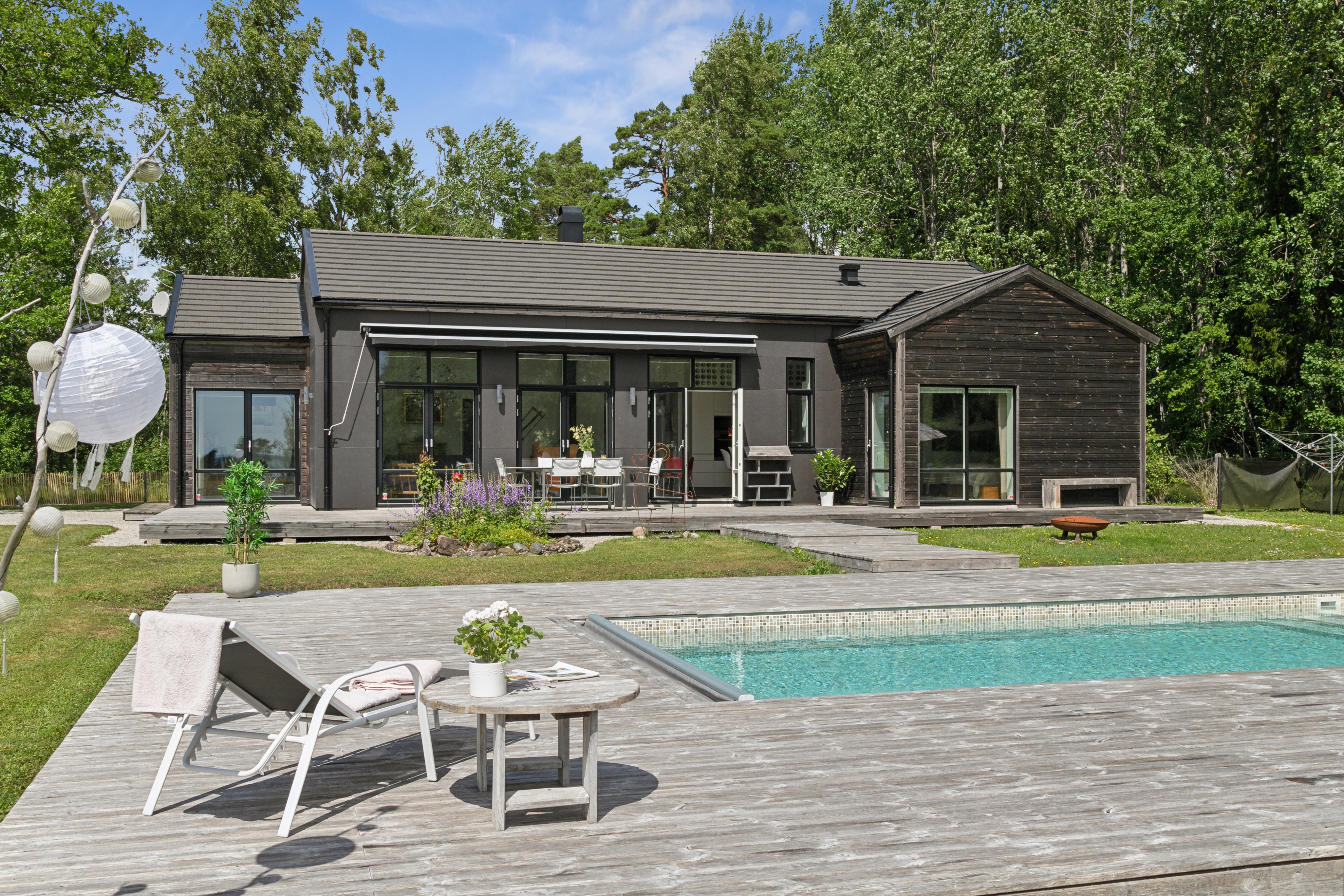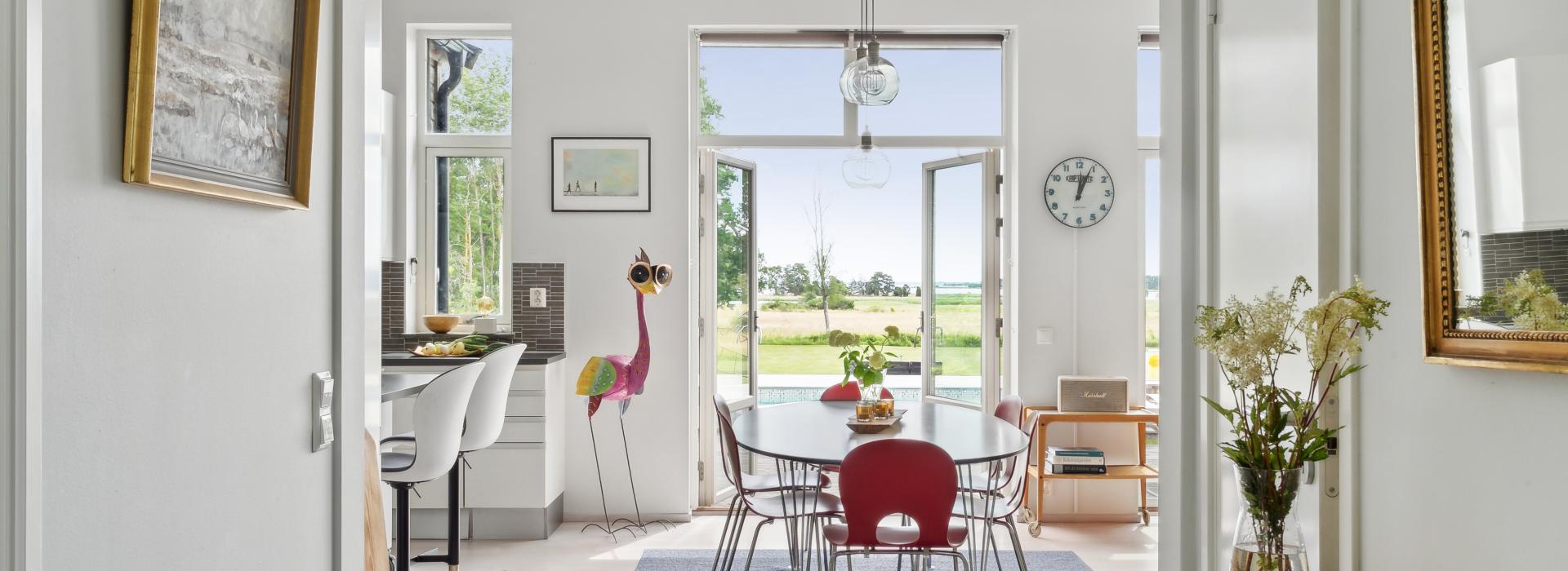 Huset är mycket trivsamt med ljus och rymd och genomgående smakfull inredning. Den öppna planlösningen tillsammans med generösa fönsterpartier suddar ut gränsen mellan inne och ute. Runt huset finns flera uteplatser i olika väderstreck som bjuder in till både avkoppling och sociala stunder. Sommartid blir trädäcket vid den uppvärmda poolen en naturlig samlingsplats där både stora och små kan njuta av långa, härliga dagar.