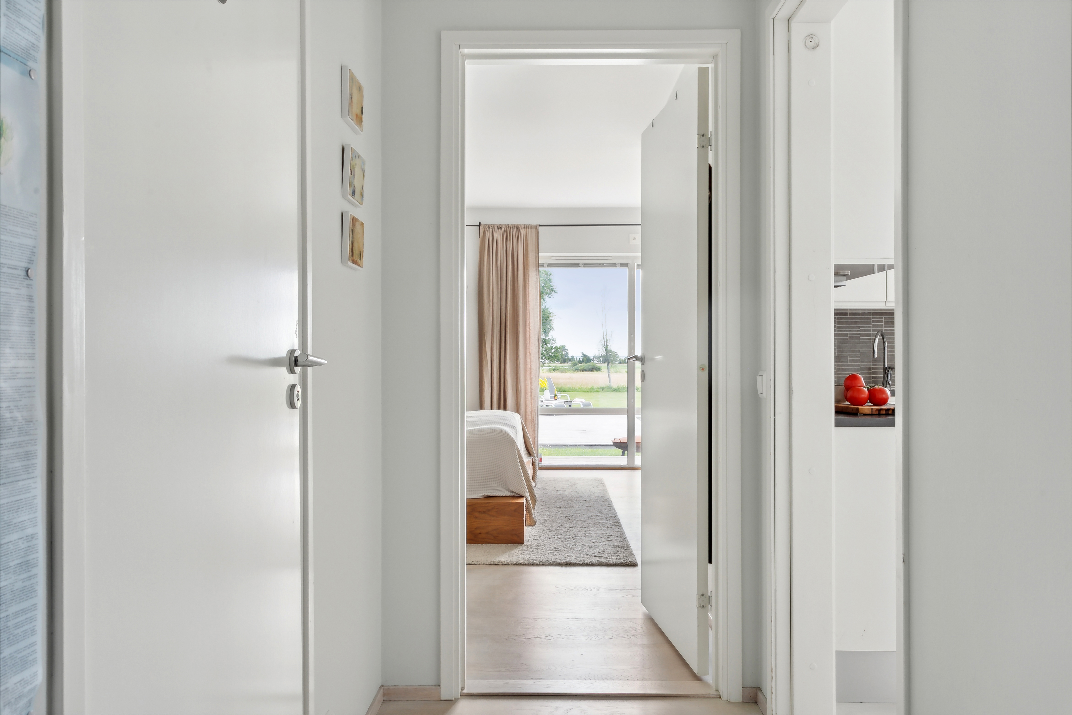 Bortom köket ligger en inre hall med lucka upp till vind.