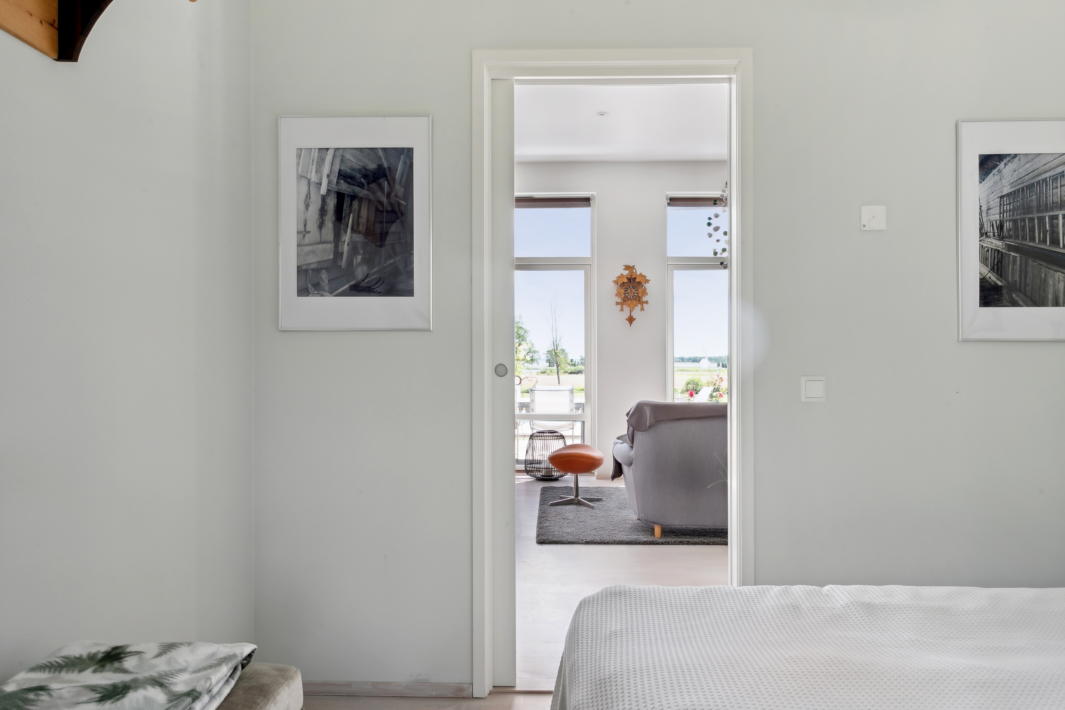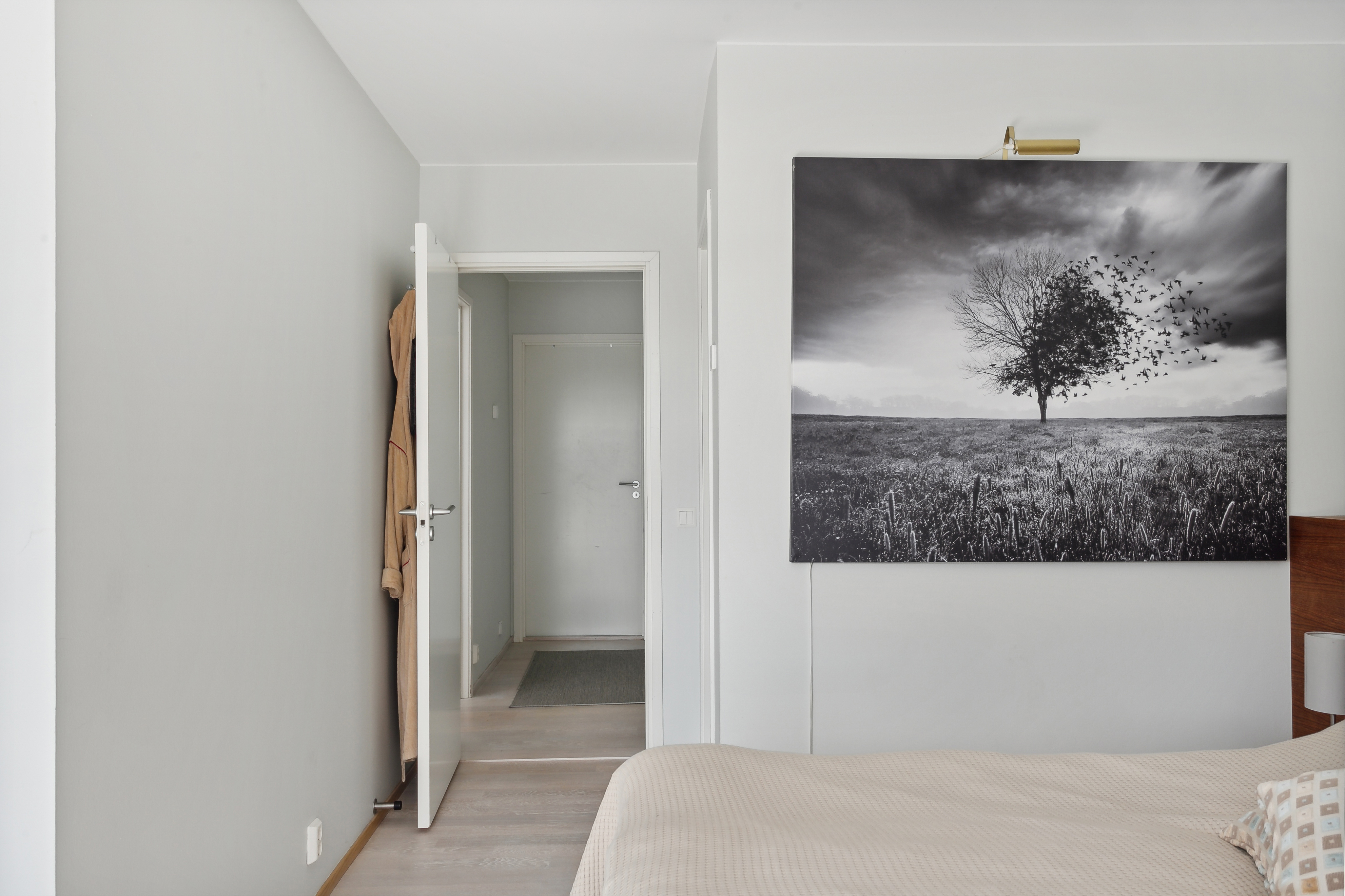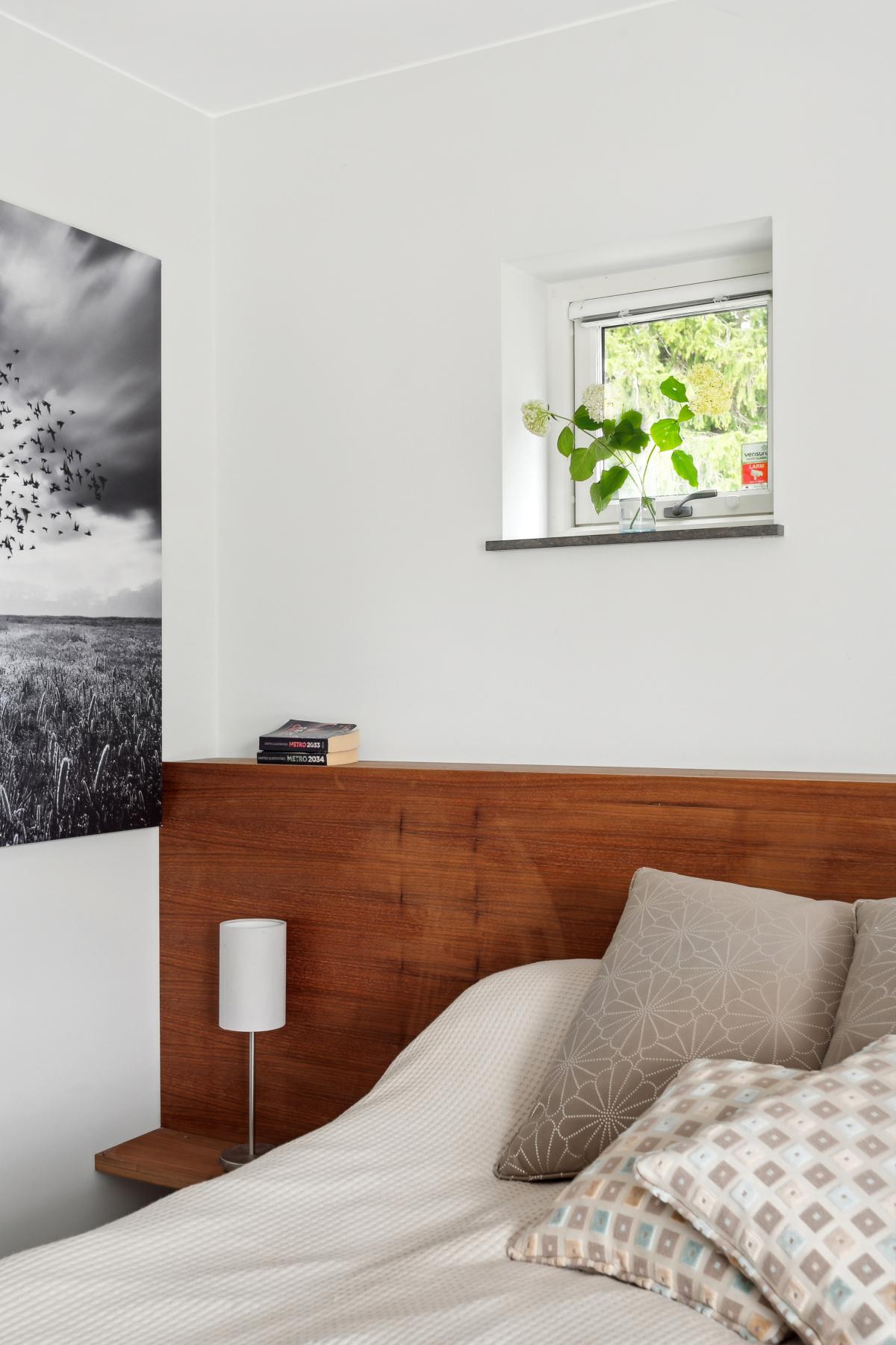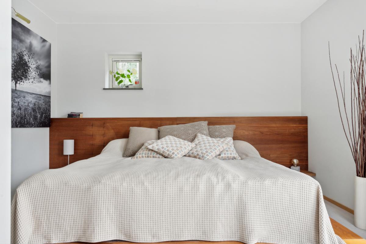 Ljust sovrum med plats för dubbelsäng.