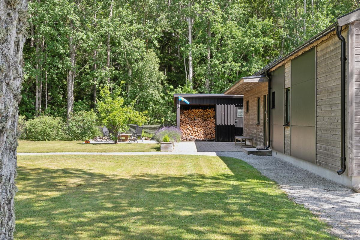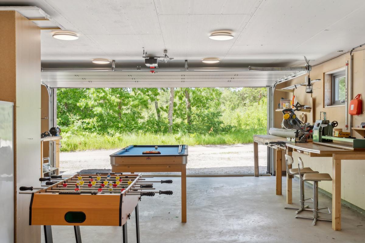 För den som behöver gott om utrymme finns utmärkta parkerings- och förvaringsmöjligheter i två dubbelgarage samt en carport. På tomten finns dessutom en charmig gäststuga och möjlighet att uppföra ytterligare ett gästhus.
