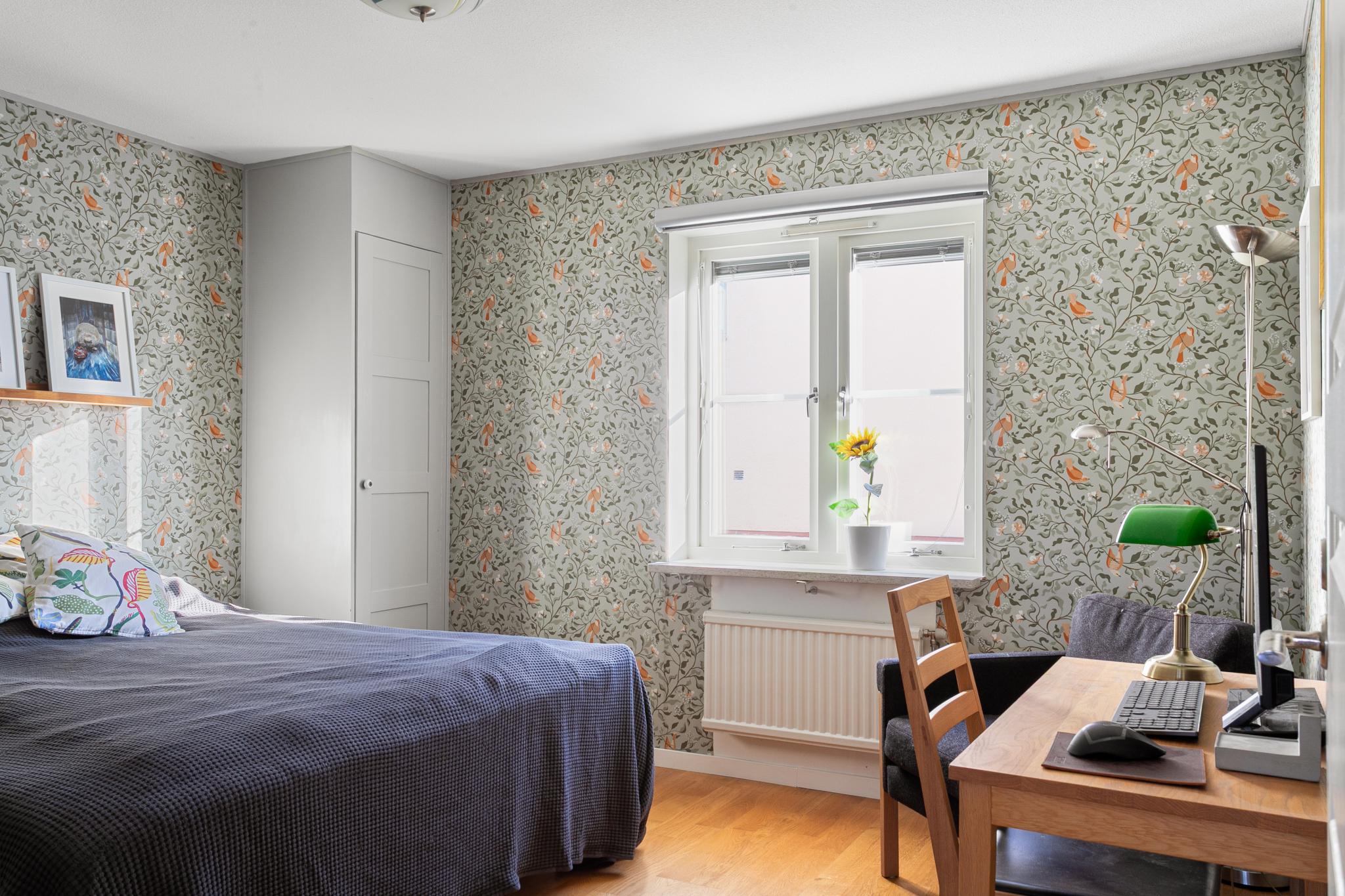 Det andra sovrummet har också trägolv, fönster mot öst och förvaring i två garderober.