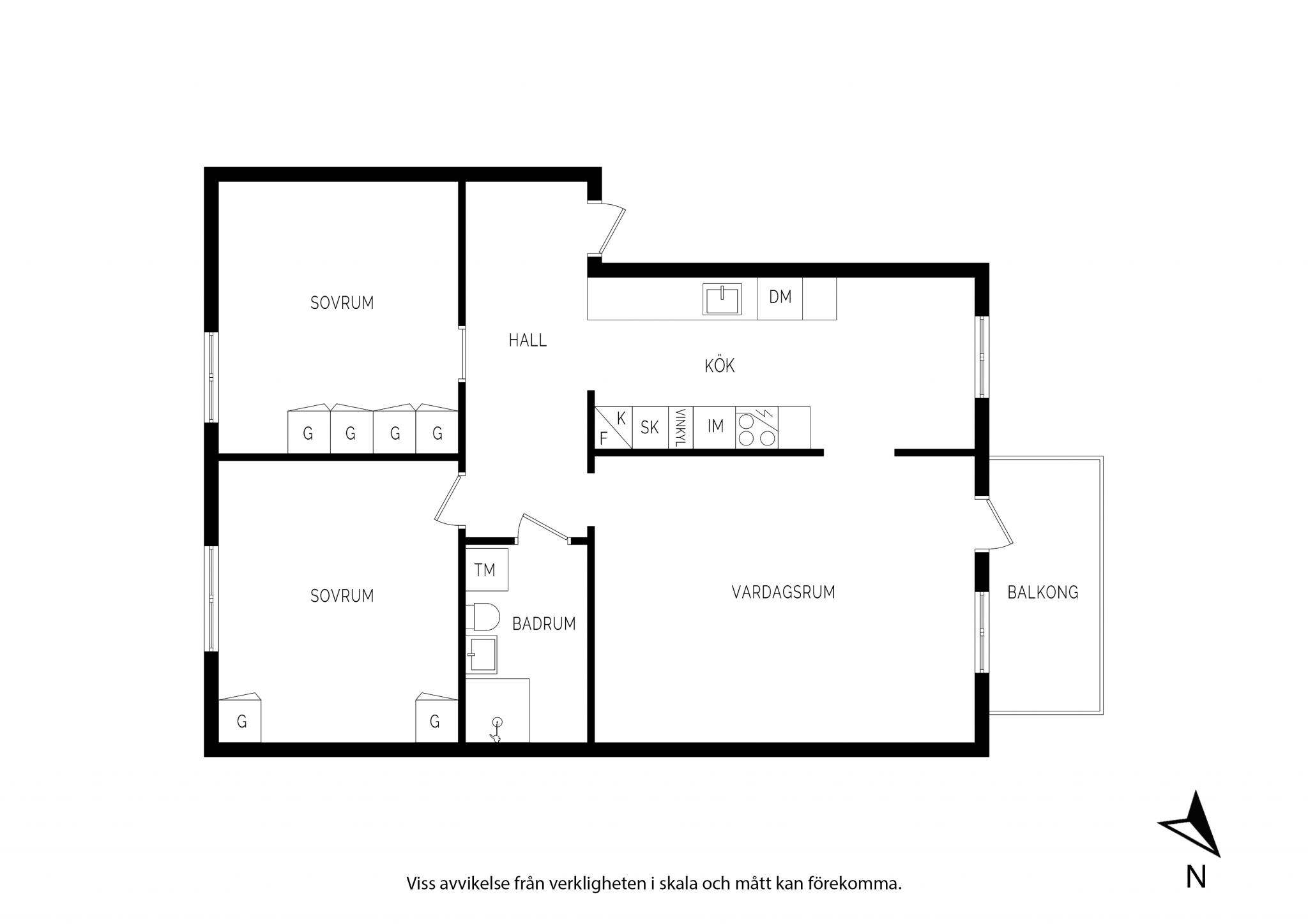 Samtliga areauppgifter är hämtade från bostadsrättsföreningen eller baserade på säljarens information. Dessa uppgifter kan av olika anledningar vara fel. Den köpare som tycker att arean har betydelse för köpet bör därför vidta en uppmätning.