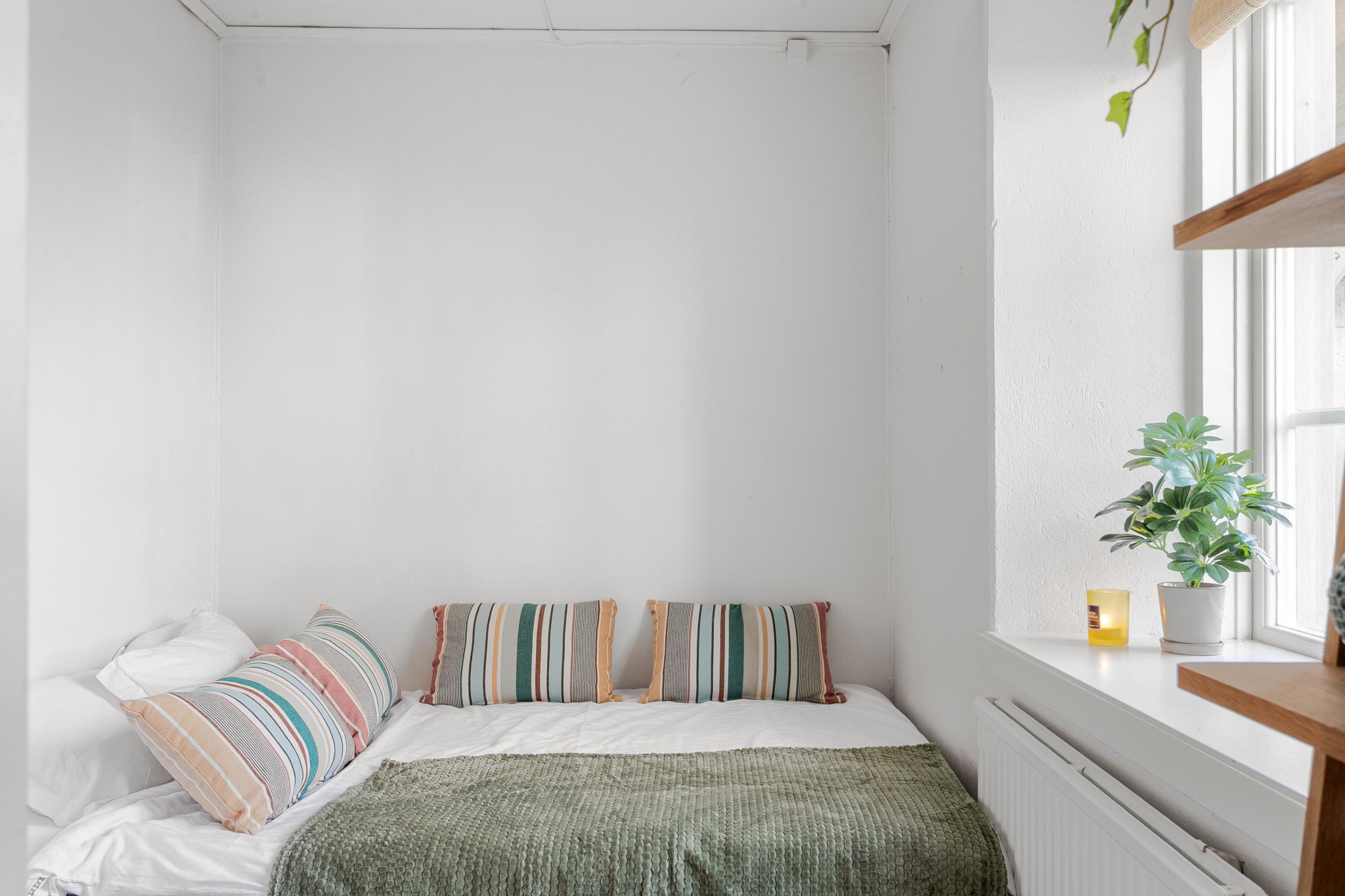 Sov/allrum på ca 6 kvm. Fönster mot gården i väster.