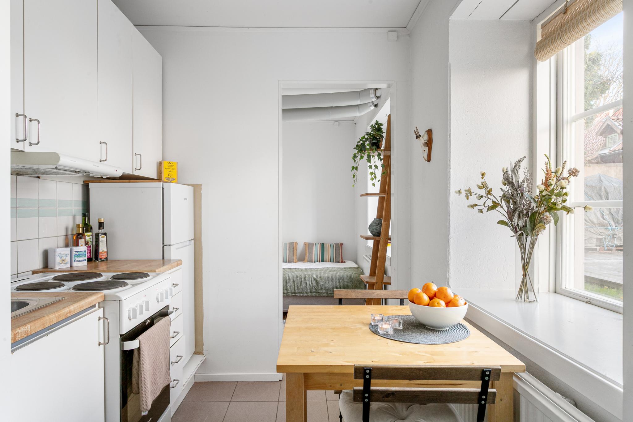 Välkommen till en liten lägenhet med utmärkt läge i Visby Innerstad. Lägenheten har två fönster mot föreningens fina och gemensamma gård som du når på några få steg. Lägenheten har ett enhetligt klinkergolv i hall, kök och rum.