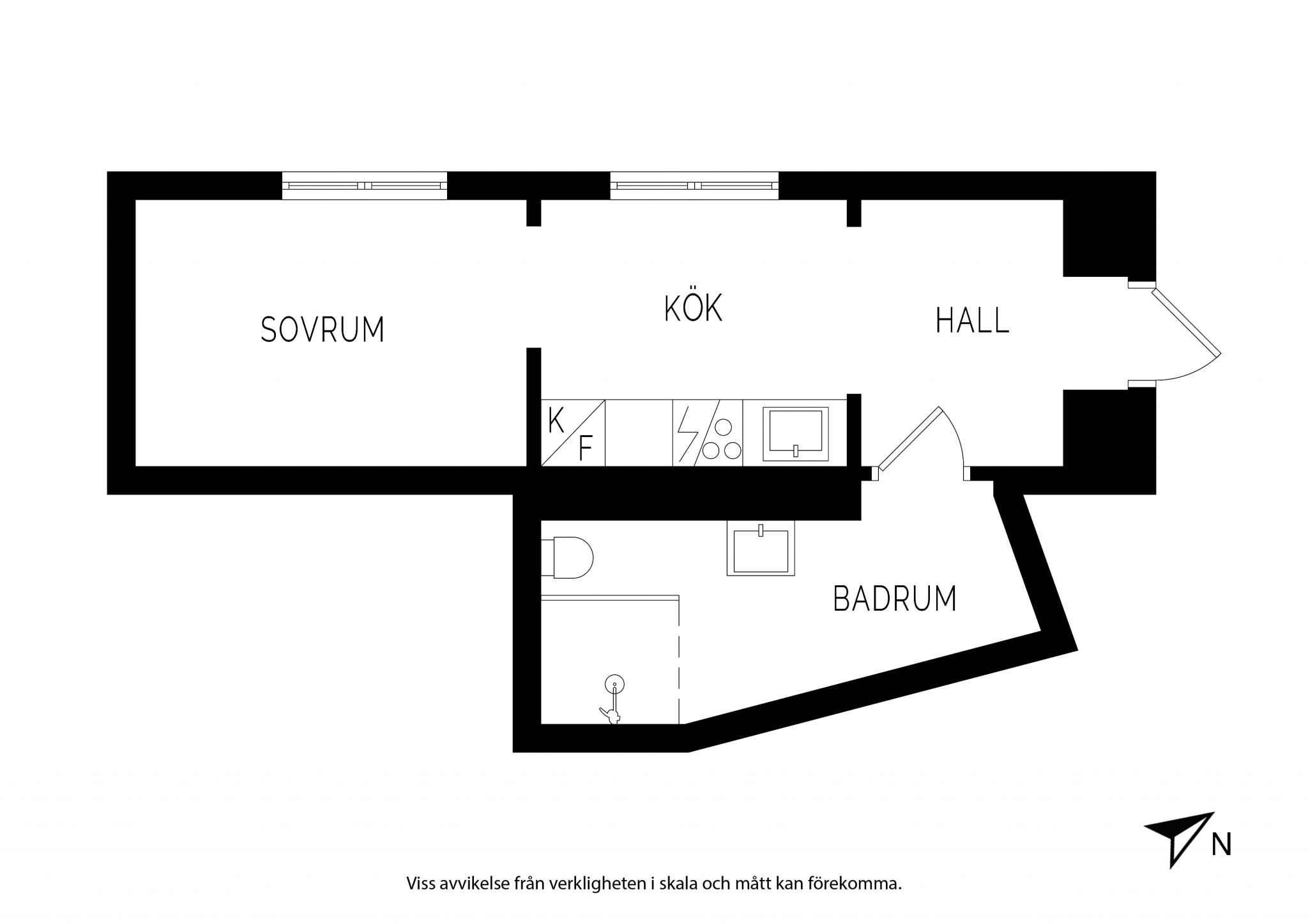 Samtliga areauppgifter är hämtade från bostadsrättsföreningen eller baserade på säljarens information. Dessa uppgifter kan av olika anledningar vara fel. Den köpare som tycker att arean har betydelse för köpet bör därför vidta en uppmätning.