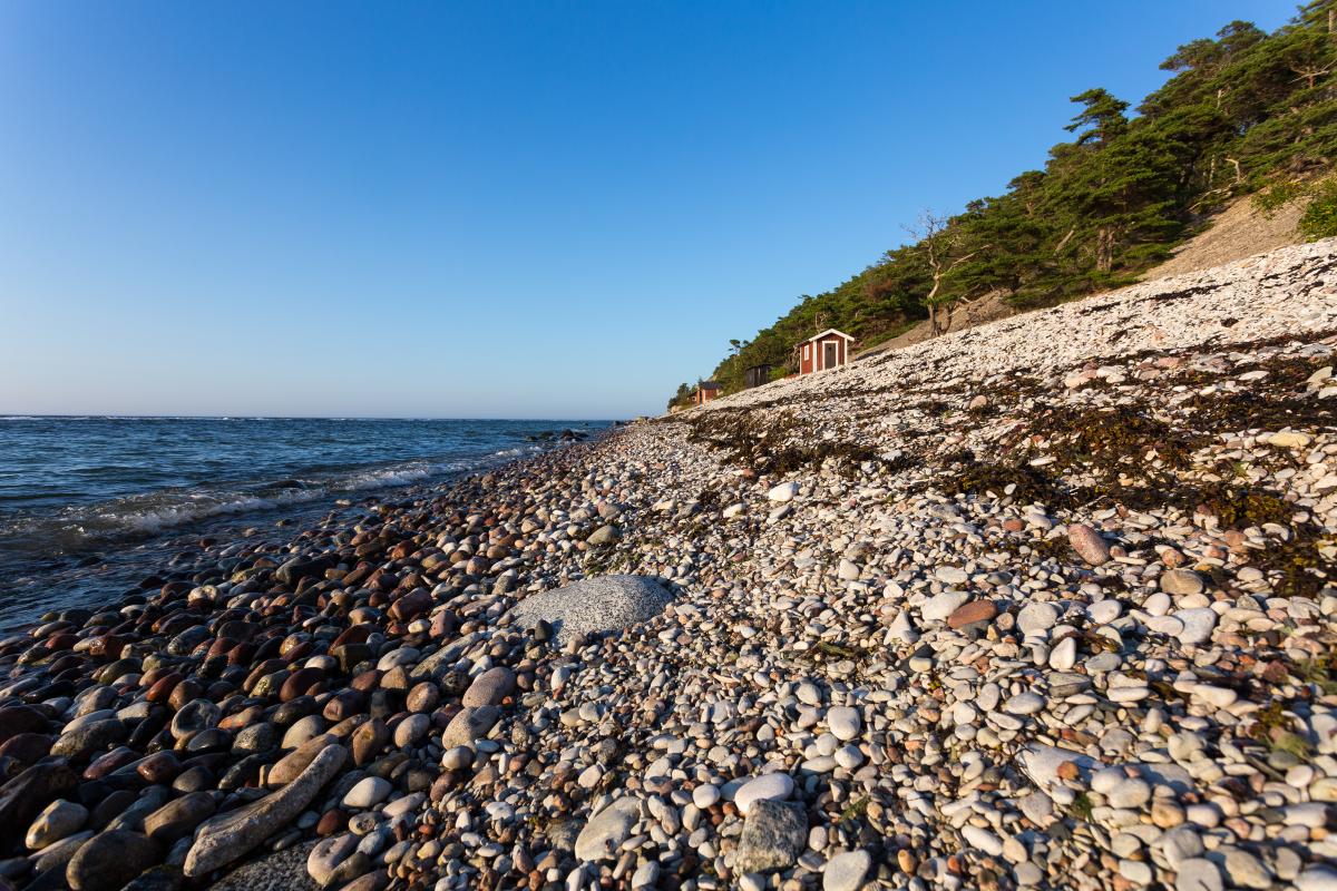 Stranden norrut med fiskebodar
