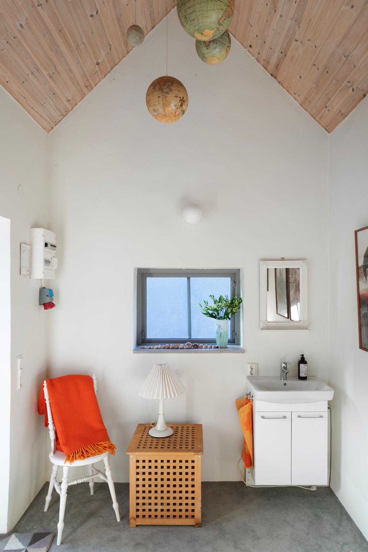 Ljus och trivsam hall som leder till det andra sovrummet på övervåningen. I hallen finns plats för både förvaring och skrivbord med trivsam vy mot havet.