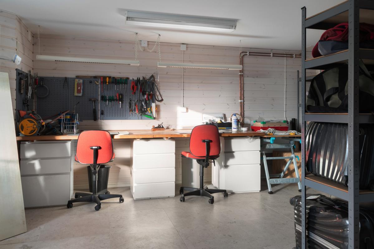 hallen rymmer förvaring och arbetsplats...
