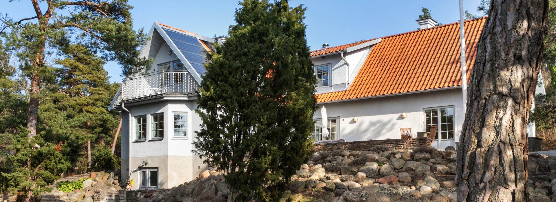 - Bergvärmepump till vattenburen golvvärme, vedpanna, solpaneler och eldstäder